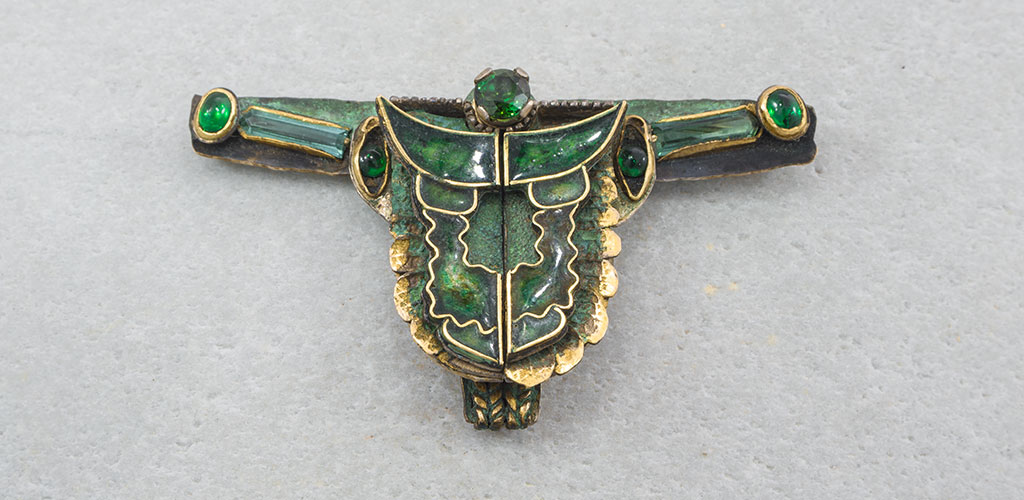 Brosche veränderbar Nr. 663 Arnd Heuer Silber, 585/ooo Gold Email Turmalin, Smaragd Preis auf Anfrage Info